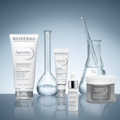 BIODERMA propose sa gamme Pigmentbio, dédiée au traitement de l'hyperpigmentation du visage et du corps qui propose un programme complet de produits pour aider à corriger les taches brunes. Elle est composée de :- Pigmentbio H2O : nettoie et démaquille le visage et le yeux en douceur, éclaircit instantanément la peau et la prépare à recevoir un soin de la gamme Pigmentbio.